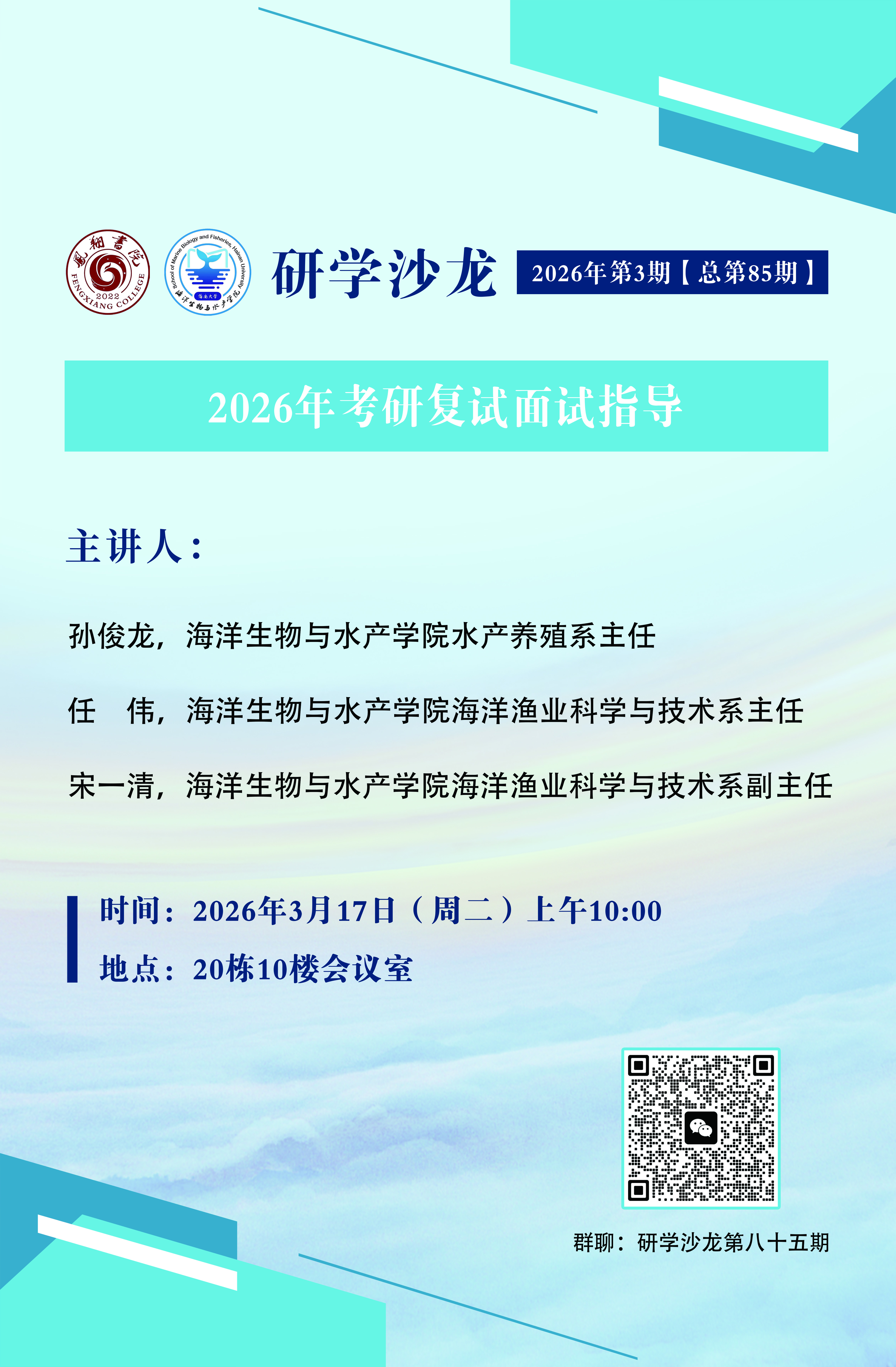 研学沙龙2026年第3期【总第85期】2026年考研复试面试指导